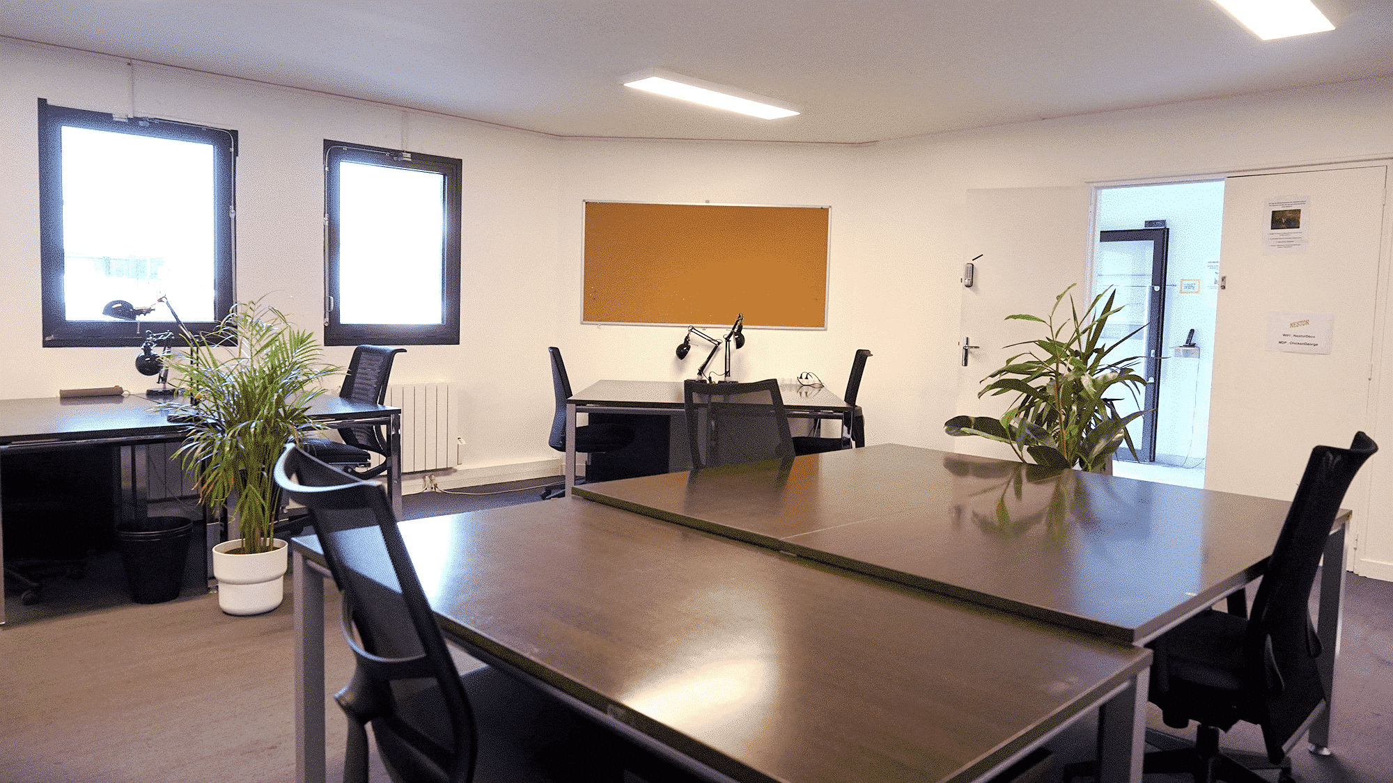 Le même mais un poil plus grand, cet espace dispose de 7 postes de travail. Idéal pour une équipe de 6/8 personnes. Pour la taille au dessus, regardez les bureaux à Robespierre.