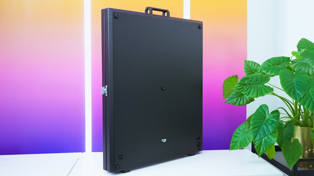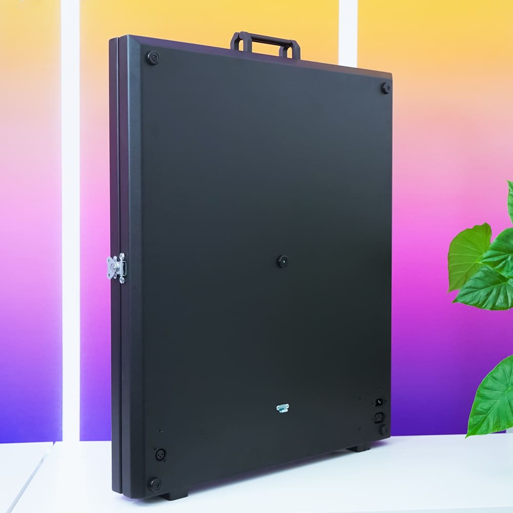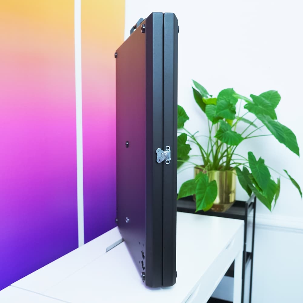 Ainsi est donc née la Twin, deux panneaux qui s’assemblent pour créer une valise facilement transportable. 2 glaces en 1, c’est autant de place gagnée lors du transport, et des capots en moins à stocker durant le tournage ou la prestation !